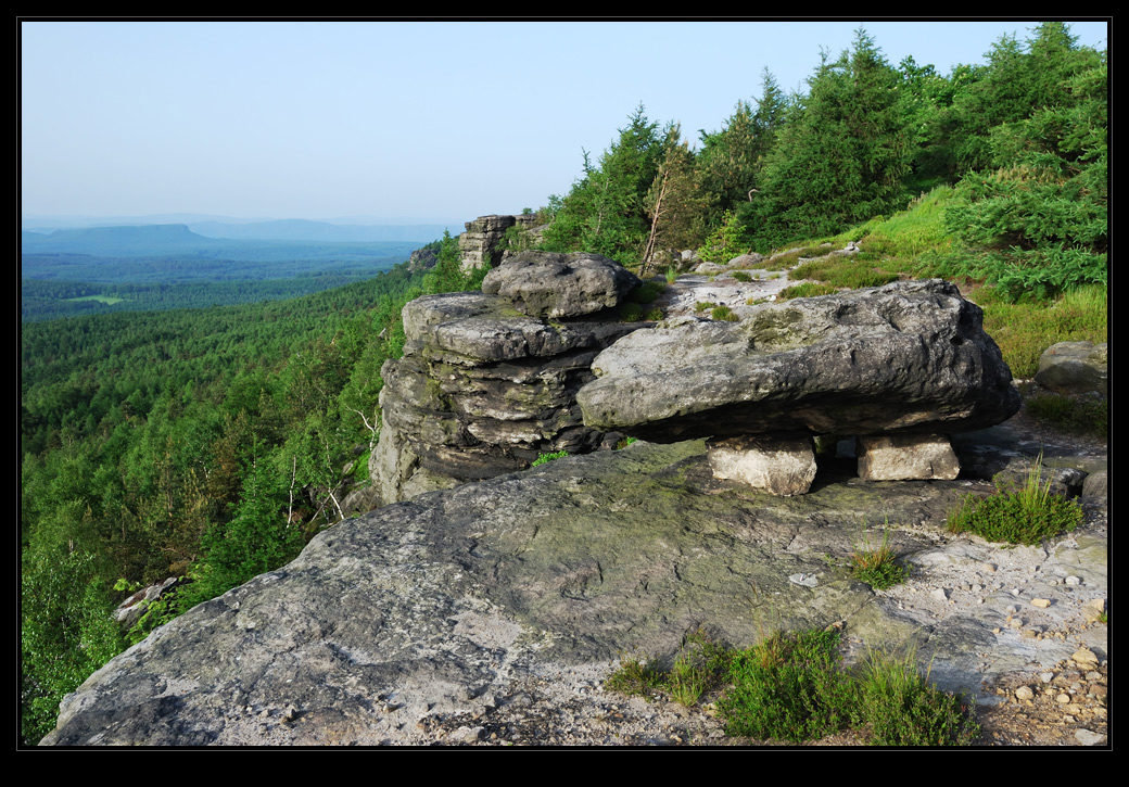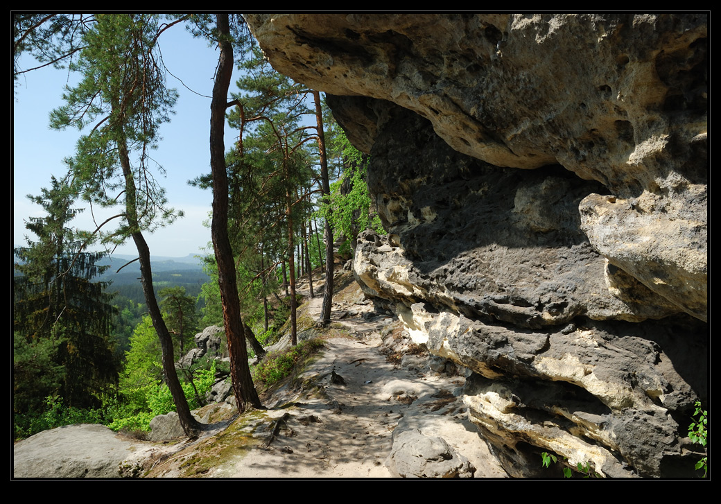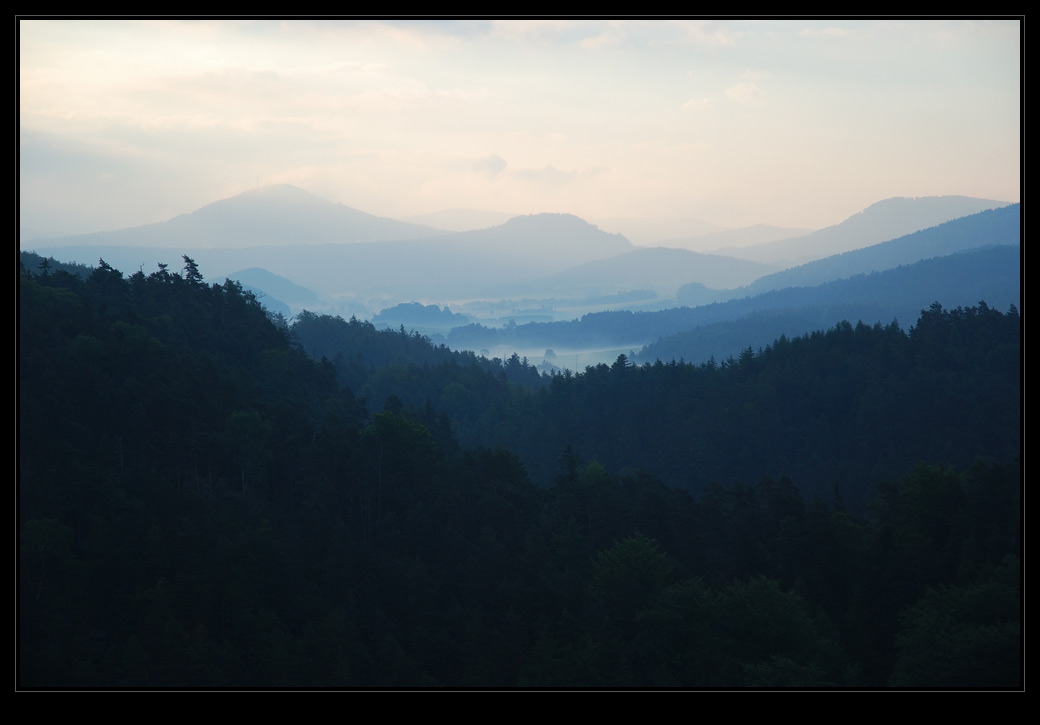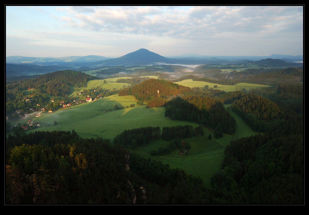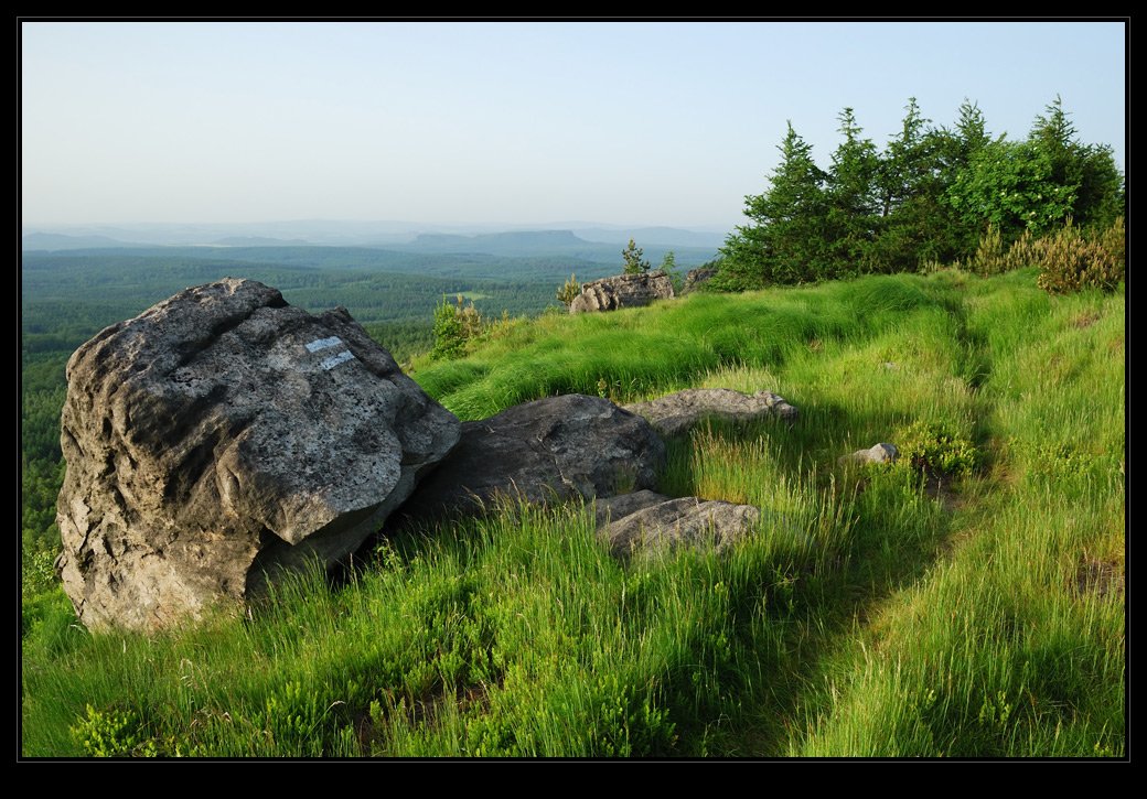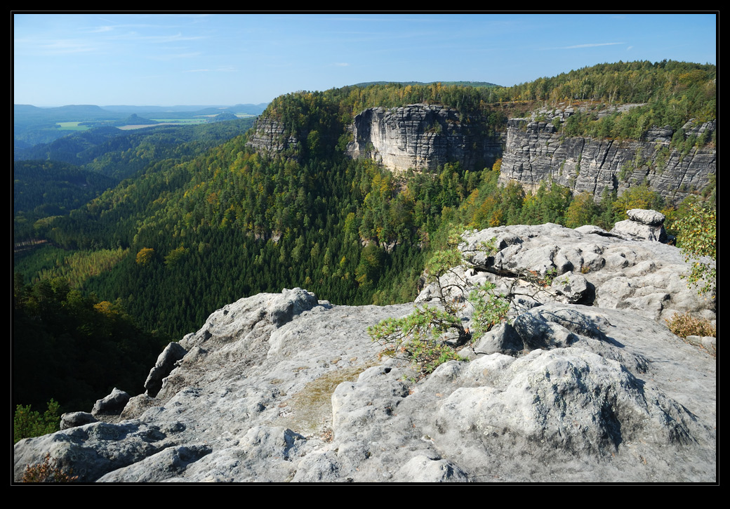 pohled do kraje se naskýtá z vyhlídek nedaleko Jetřichovic (Mariina
