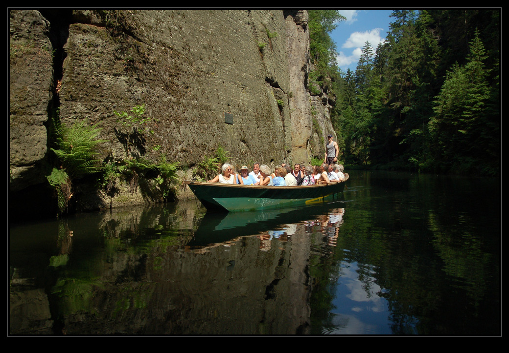 Pravčickou bránu a nechá se povozit na lodičce po Tiché a