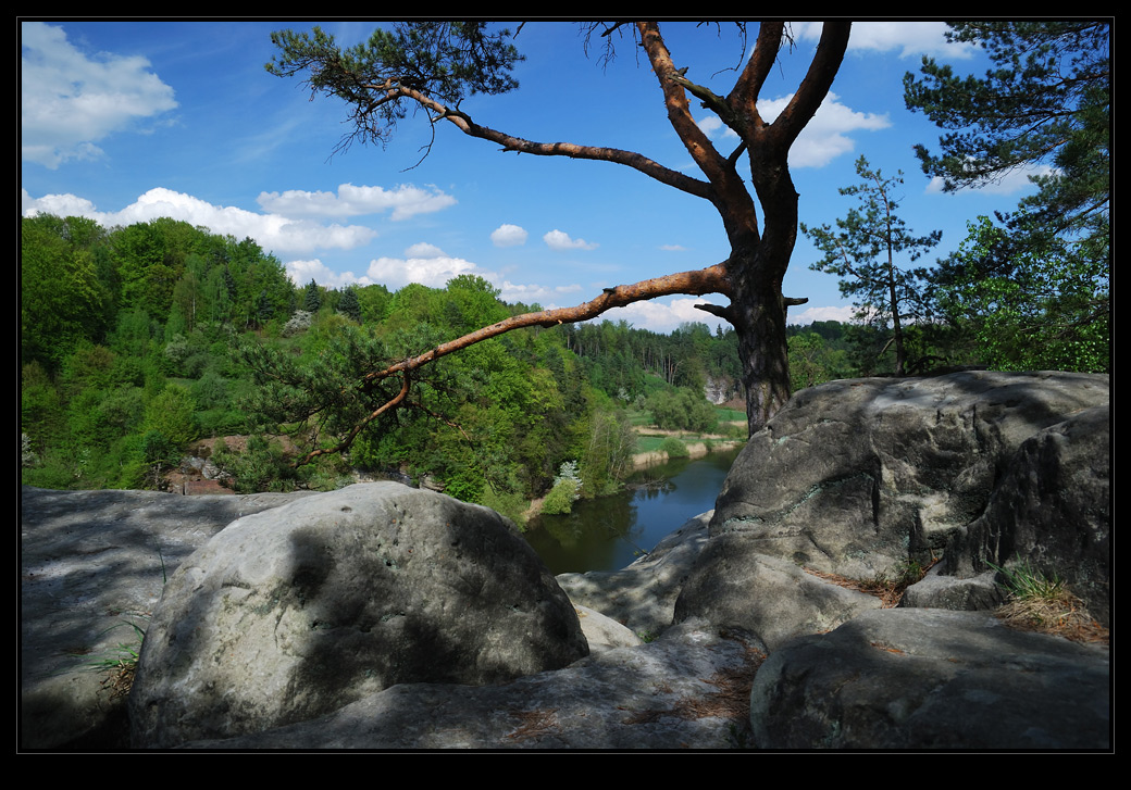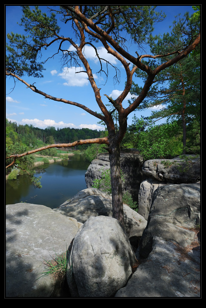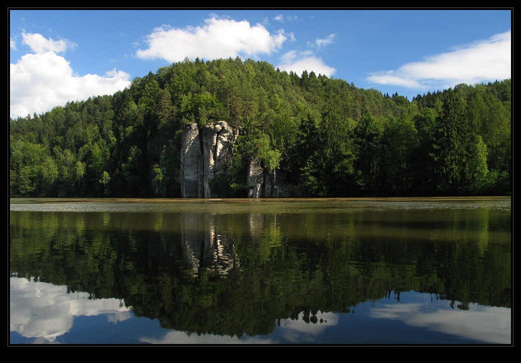 Věžák. Přímo z něj totiž vystupují pískovcové skály, které se odráží
